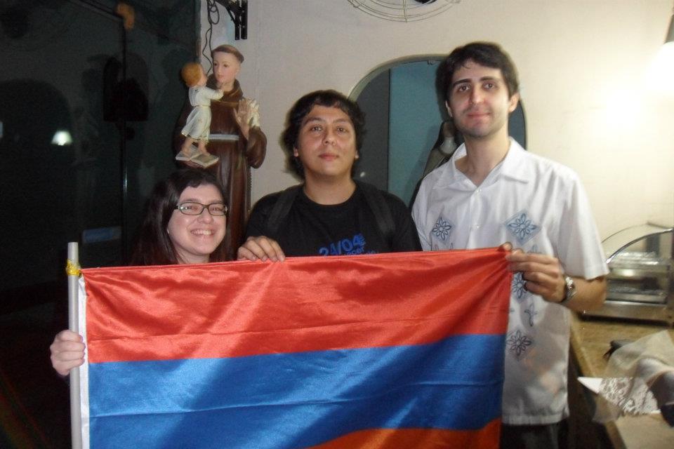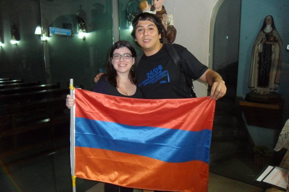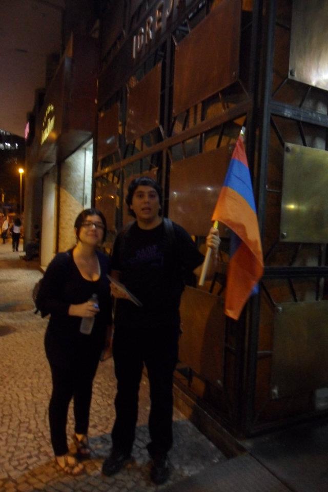 Talvez se nesse dia 24 de abril eu estivesse com mais armênios nas ruas do centro do Rio, consequentemente com mais bandeiras, cantando músicas armênias, usando um mega fone para falar da nossa Causa, com toda certeza, não confundiriam a nossa bandeira com a bandeira do clube catalão. Pouco depois de eu começar a distribuir os panfletos informativos da nossa Causa, na porta da Igreja onde foi celebrada a Missa, apareceram as outras três pessoas. Mais dois armênios e um filósofo de ascendência libanesa que conhece nossa história e nossa luta pela CAUSA ARMÊNIA.