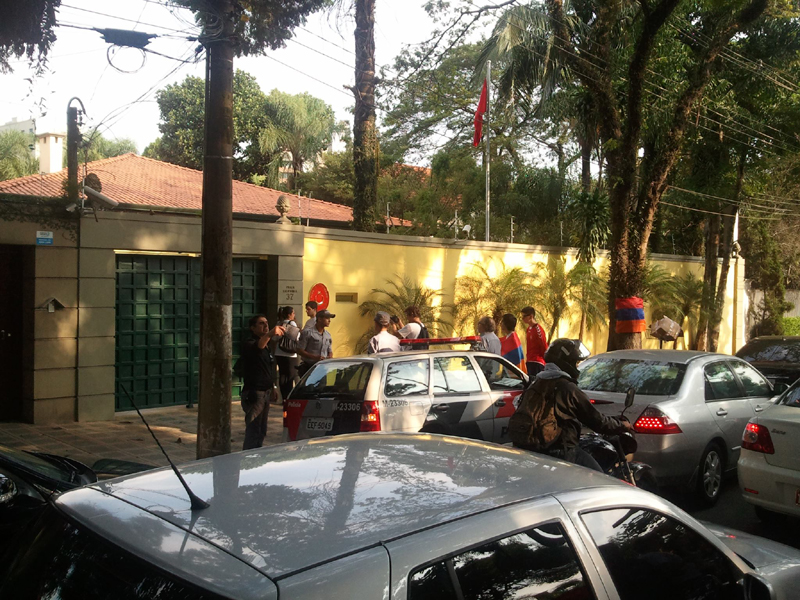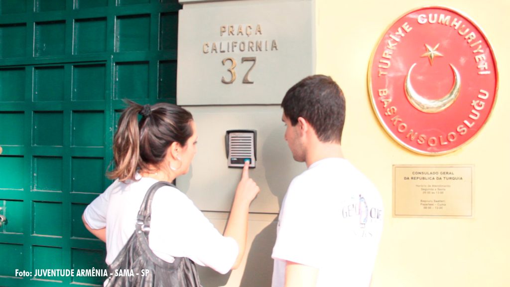 15 horas e 25 mim – Depois de alguma negociação, 5 jovens se posicionam em frente ao consulado e dois deles tocam a campainha. Durante 10 min os jovens armênios de São Paulo tentaram contato. De dentro do consulado somente o barulho distante de uma discussão acalorada, bater de portas e passos acelerados. Para se certificar que a carta fosse entregue os jovens a jogaram por baixo da porta da garagem.