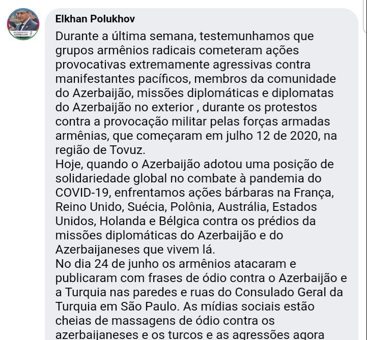 No 25 de agosto, Elkhan Polukhov, embaixador da República do Azerbaijão no Brasil, publicou na…