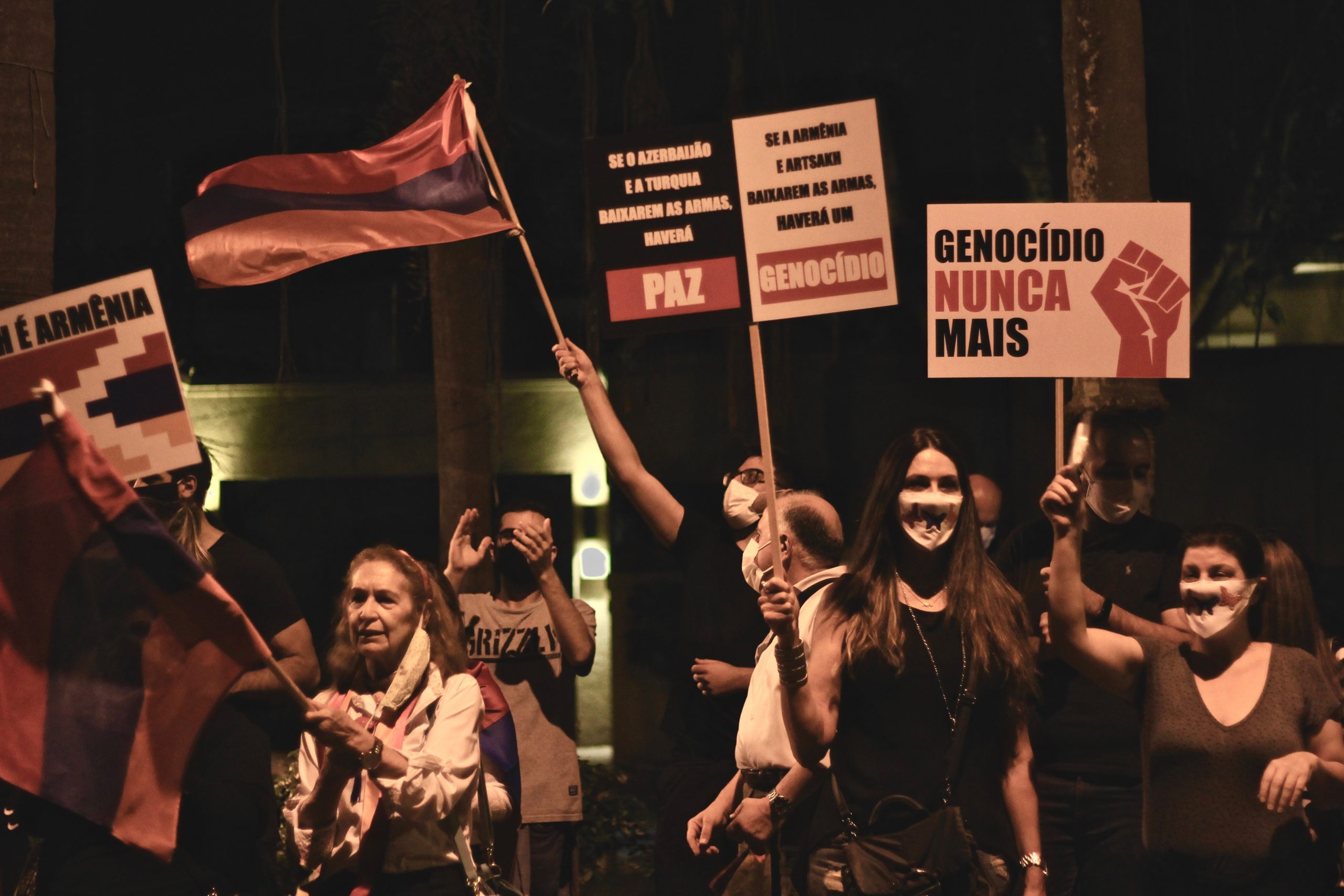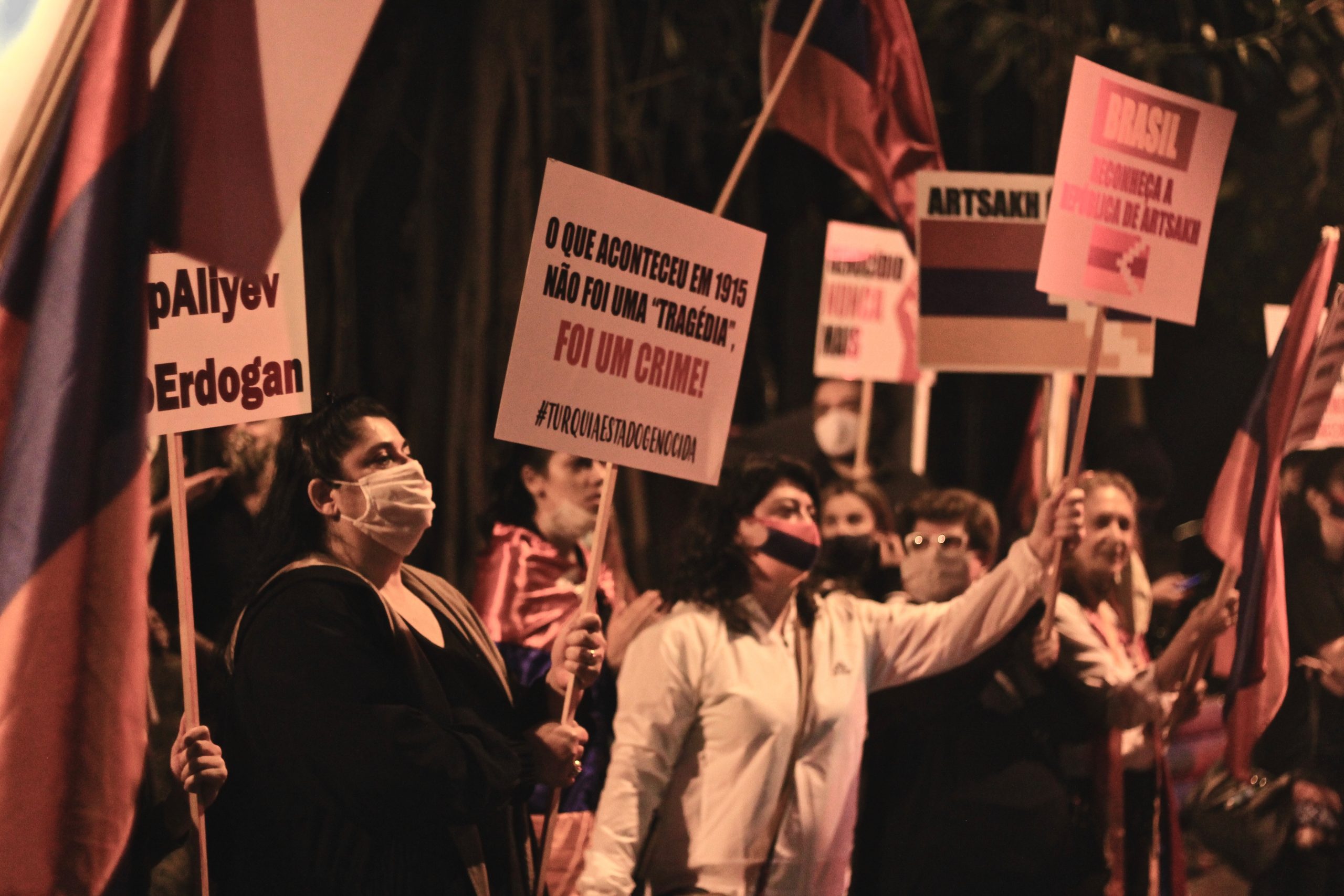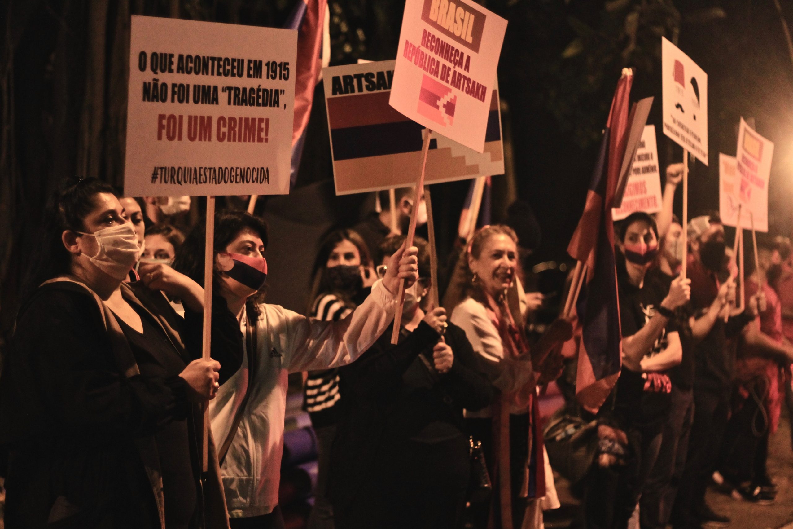 Nesta quinta-feira, dia 8 de outubro, a comunidade armênia de São Paulo se reuniu em frente ao consulado turco da cidade para protestar contra os ataques das últimas duas semanas à Artsakh cometidos pelo Azerbaijão, que tem sido extensivamente apoiado pela Turquia no conflito.
