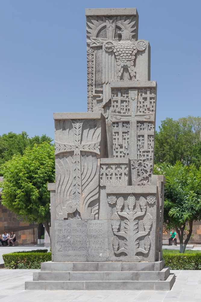 O pedestal do Monumento Mãe Armênia em Yerevan é um exemplo dessa influência cultural. Originalmente construído em 1950 para sustentar uma estátua de Stalin, a base de três andares foi projetada como uma basílica secular, emprestando o vocabulário arquitetônico das estruturas religiosas locais. Em 1962, devido a mudanças na política soviética e um esforço mais amplo para se afastar da iconografia totalitária, a estátua de Stalin foi removida, mas o pedestal permaneceu. Ele foi reaproveitado para abrigar a estátua da Mãe Armênia, uma figura nacional de força e continuidade, esculpida por Ara Harutyunyan em 1967. A segunda vida do monumento foi possível porque sua linguagem arquitetônica já era armênia.