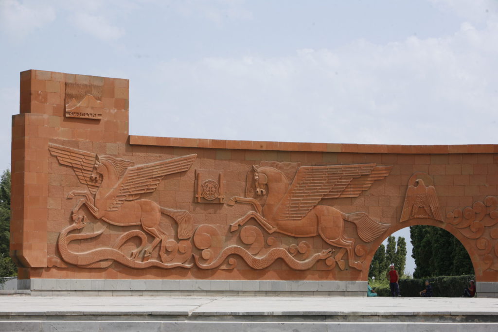 O pedestal do Monumento Mãe Armênia em Yerevan é um exemplo dessa influência cultural. Originalmente construído em 1950 para sustentar uma estátua de Stalin, a base de três andares foi projetada como uma basílica secular, emprestando o vocabulário arquitetônico das estruturas religiosas locais. Em 1962, devido a mudanças na política soviética e um esforço mais amplo para se afastar da iconografia totalitária, a estátua de Stalin foi removida, mas o pedestal permaneceu. Ele foi reaproveitado para abrigar a estátua da Mãe Armênia, uma figura nacional de força e continuidade, esculpida por Ara Harutyunyan em 1967. A segunda vida do monumento foi possível porque sua linguagem arquitetônica já era armênia.